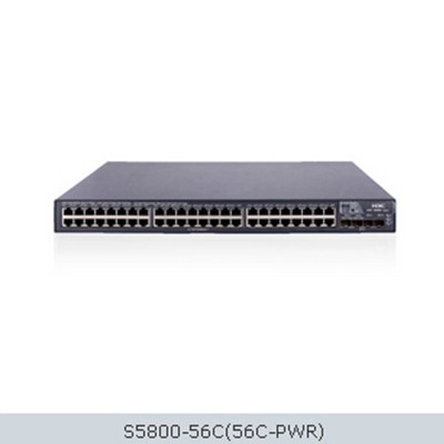 * S5800-56C-PWR:48個10/100/1000Base-T以太網(wǎng)端口(中功率PoE),4個1/10G SFP+端口,1個業(yè)務(wù)插槽;